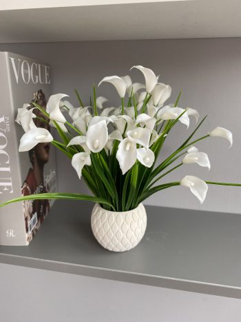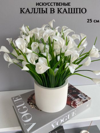 Искусственная трава осока с каллами в черном квадратном кашпо 3 шт