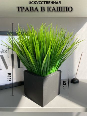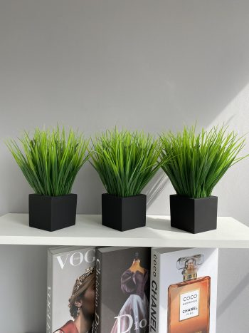 Искусственная трава осока в черном квадратном кашпо 3 шт